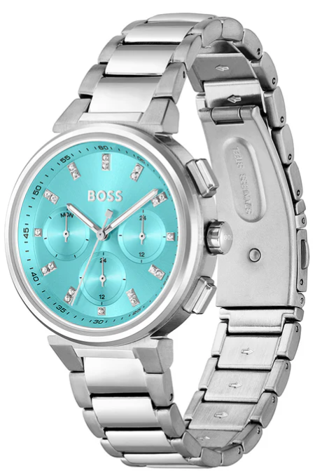 | Tip sata: Ručni sat Tip mehanizma: Kvarcni Tip narukvice: Čelik Tip stakla: Mineralno Materijal kućišta: Čelik Prečnik kućišta: 38 mm Oblik kućišta: Okruglo Vrsta kopče: Preklopna Dodatne funkcije: Dani u nedelji Vodootpronost: 30 metara Prikaz: Analogni Boja narukvice: Srebrna Boja brojčanika: Tirkiz Boja kućišta: Srebrna Garancija na mehanizam: 24 meseca |