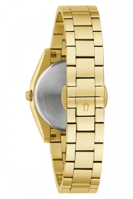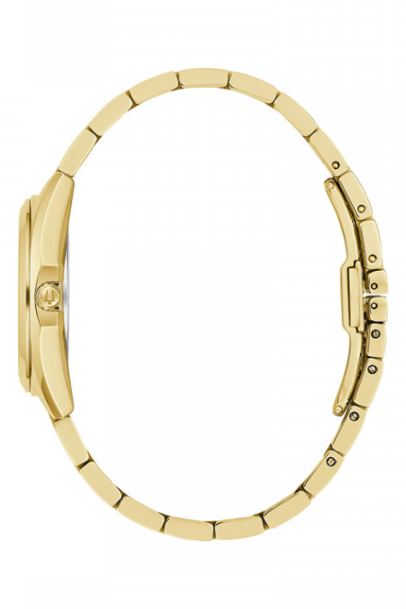 | Tip sata: Ručni sat Tip mehanizma: Kvarcni Tip narukvice: Čelik Tip stakla: Safirno Materijal kućišta: Čelik Prečnik kućišta: 31 mm Oblik kućišta: Okruglo Vrsta kopče: Leptir Vodootpronost: 30 metara Prikaz: Analogni Boja narukvice: Zlatna Boja brojčanika: Sedef Boja kućišta: Zlatna Garancija na mehanizam: 36 meseca |