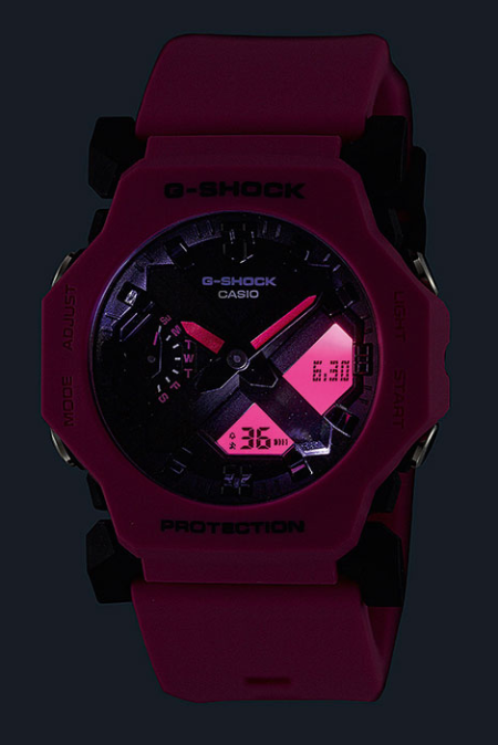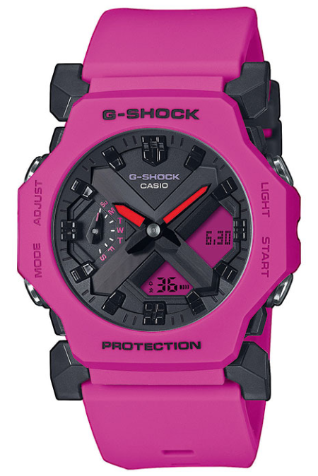 Tip sata: Ručni sat Tip mehanizma: Kvarcni Tip narukvice: Guma Tip stakla: Mineralno Materijal kućišta: Resin Prečnik kućišta: 45 mm Debljina kućišta: 12 mm Oblik kućišta: Oktagonalno Vrsta kopče: Klasična Dodatne funkcije: 12/24 prikaz vremena, 5 alarma, Kalendar, LED svetlo, Otporan na udarce, Štoperica, Svetsko vreme, Tajmer Vodootpronost: 200 metara Prikaz: Kombinovani Boja narukvice: Roze Boja brojčanika: Crna Boja kućišta: Roze Garancija na mehanizam: 24 meseca |