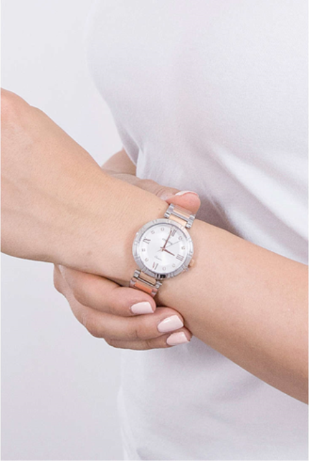 Tip sata: Ručni sat Tip mehanizma: Kvarcni Tip narukvice: Čelik Tip stakla: Mineralno Materijal kućišta: Čelik Prečnik kućišta: 33 mm Debljina kućišta: 9 mm Oblik kućišta: Okruglo Vrsta kopče: Preklopna Vodootpronost: 50 metara Prikaz: Analogni Boja narukvice: Bi kolor Boja brojčanika: Bela Boja kućišta: Srebrna Garancija na mehanizam: 24 meseca |