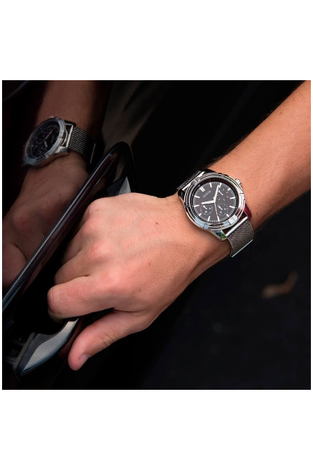 | Tip sata: Ručni sat Tip mehanizma: Kvarcni Tip narukvice: Pancir narukvica Tip stakla: Mineralno Materijal kućišta: Čelik Prečnik kućišta: 45 mm Debljina kućišta: 11 mm Oblik kućišta: Okruglo Vrsta kopče: Klasična Dodatne funkcije: Datum, Hronograf Vodootpronost: 50 metara |