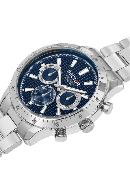 | Tip sata: Ručni sat Tip mehanizma: Kvarcni Tip narukvice: Čelik Tip stakla: Mineralno Materijal kućišta: Čelik Prečnik kućišta: 45 mm Oblik kućišta: Okruglo Vrsta kopče: Preklopna Dodatne funkcije: 12/24 prikaz vremena, Datum, Hronograf, Štoperica Vodootpronost: 50 metara Prikaz: Analogni Boja narukvice: Srebrna Boja brojčanika: Plava Boja kućišta: Srebrna Garancija na mehanizam: 36 meseca |