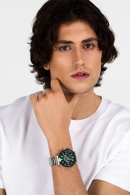 | Tip sata: Ručni sat Tip mehanizma: Kvarcni Tip narukvice: Čelik Tip stakla: Mineralno Materijal kućišta: Čelik Prečnik kućišta: 45 mm Oblik kućišta: Okruglo Vrsta kopče: Preklopna Dodatne funkcije: 12/24 prikaz vremena, Datum Vodootpronost: 50 metara Prikaz: Analogni Boja narukvice: Srebrna Boja brojčanika: Zelena Boja kućišta: Srebrna Garancija na mehanizam: 36 meseca |