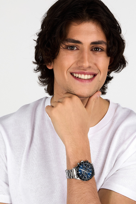 | Tip sata: Ručni sat Tip mehanizma: Kvarcni Tip narukvice: Čelik Tip stakla: Mineralno Materijal kućišta: Čelik Prečnik kućišta: 45 mm Oblik kućišta: Okruglo Vrsta kopče: Preklopna Dodatne funkcije: 12/24 prikaz vremena, Datum, Hronograf Vodootpronost: 50 metara Prikaz: Analogni Boja narukvice: Srebrna Boja brojčanika: Plava Boja kućišta: Srebrna Garancija na mehanizam: 36 meseca |