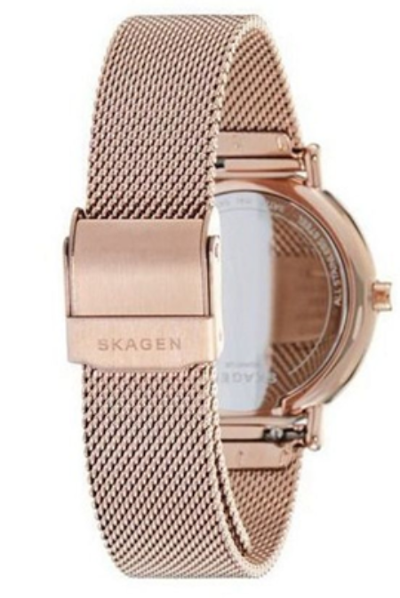 | Tip sata: Ručni sat Tip mehanizma: Kvarcni Tip narukvice: Pancir narukvica Tip stakla: Mineralno Materijal kućišta: Čelik Prečnik kućišta: 30 mm Debljina kućišta: 6 mm Oblik kućišta: Okruglo Vrsta kopče: Preklopna Vodootpronost: 30 metara Prikaz: Analogni Boja narukvice: Roze zlato Boja brojčanika: Roze Boja kućišta: Roze-Zlato Garancija na mehanizam: 24 meseca |