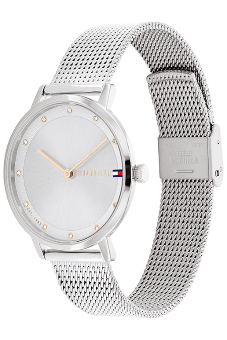 Tip sata: Ručni sat Tip mehanizma: Kvarcni Tip narukvice: Pancir narukvica Tip stakla: Mineralno Materijal kućišta: Čelik Prečnik kućišta: 34 mm Oblik kućišta: Okruglo Vrsta kopče: Juvelirska Boja narukvice: Srebrna Boja brojčanika: Srebrna Boja kućišta: Srebrna Garancija na mehanizam: 24 meseca |