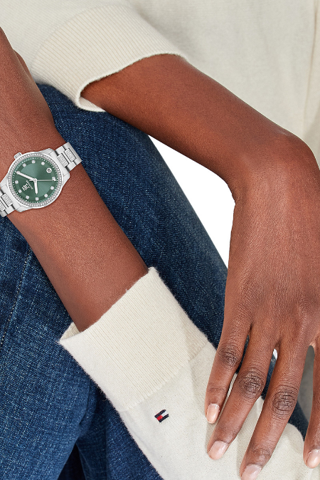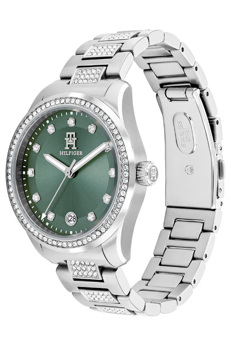 Tip sata: Ručni sat Tip mehanizma: Kvarcni Tip narukvice: Čelik Tip stakla: Mineralno Materijal kućišta: Čelik Prečnik kućišta: 36 mm Oblik kućišta: Okruglo Vrsta kopče: Preklopna Dodatne funkcije: Datum Vodootpronost: 50 metara Prikaz: Analogni Boja narukvice: Srebrna Boja brojčanika: Zelena Boja kućišta: Srebrna Garancija na mehanizam: 24 meseca |
