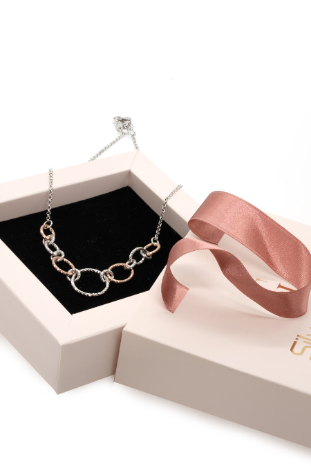 Srebrna ogrlica bi kolor italijanskog brenda Fraboso sa dijamantskom prašinom. Savršen izbor kako za dnevnu tako i za večernju kombinaciju.Srebro je finoce 925. Podesiva veli;ina ogrlice 40-42 cm.